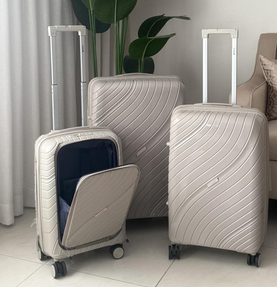 احصل الآن على طقم شنط سفر رخيصه يجمع بين الجودة العالية والسعر المناسب مع ضمان ضد الكسر، وتصميم عصري بفتحة أمامية لمقاس 20 لتسهيل الوصول لمحتوياتك بسرعة أثناء السفر.