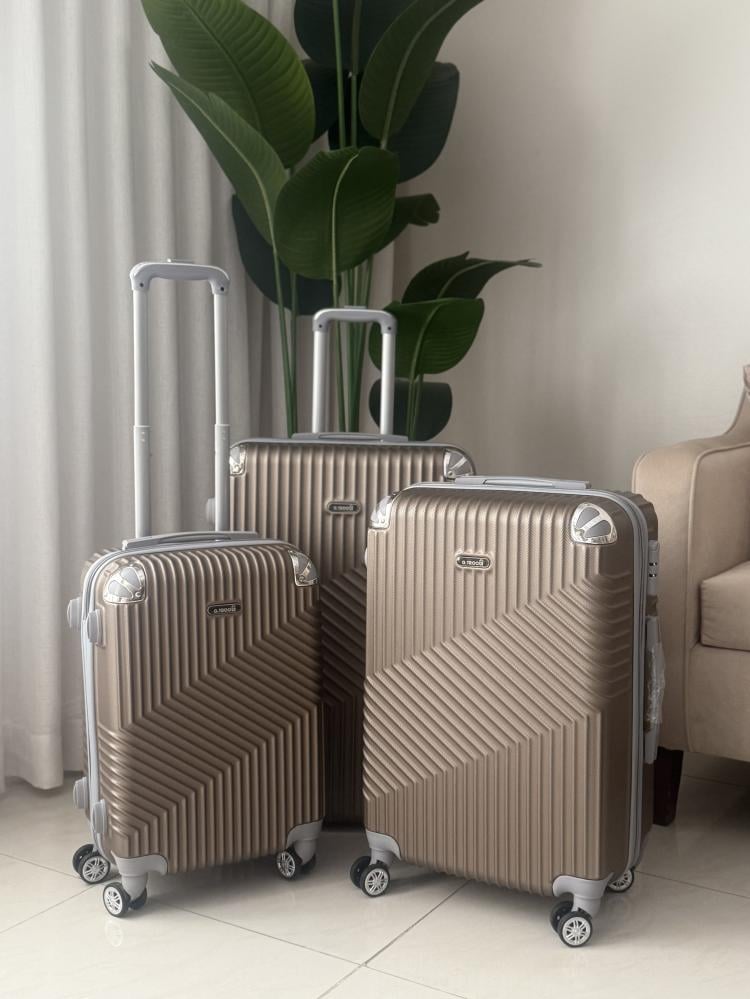 3-piece gold luggage set with double covers and protective edges - from “Akyat Luggage”